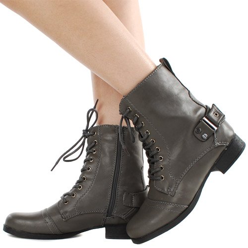 Fighter01 Lace Front Combat Ankle Boots GRAY Reviews