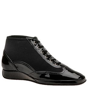 ? Showstopping style is yours in this superb casual bootie ? Soft patent leather and stretch fabric upper ? Elastic upper provides an easy slip-on fit ? Decorative, non-functional laces ? Leather-covered foam-cushioned insole ? Flexible California welted construction ? Comfortable sport rubber sole ? 3/4" heel height ? Made in Italy