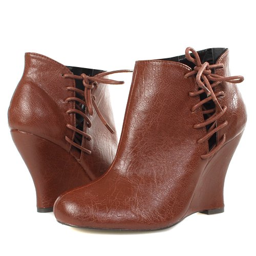 Baylee6 Side Lace Wedged Ankle Boots BROWN Reviews