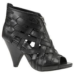 ? You'll look ravishing in this gorgeous interwoven shootie ? Synthetic upper with foot-flattering crisscrossed straps ? Easy front zipper entry ? Lightly cushioned footbed ? Rubber-like sole with 5/8" platform ? 3" heel height
