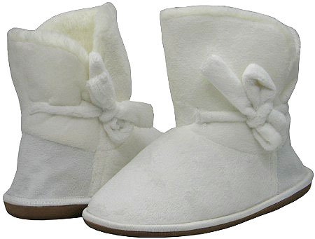 This cute boot has the look and feel of the authentic boot. With warmth and comfort added in, fur like lining on the outer and inside , notched upper for easy on / off, bow tie detail .